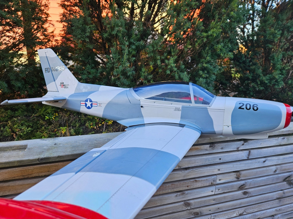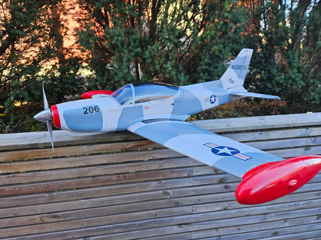 Selger denne med Turnigy 4250-650 motor og Hobby wing esc. Har ikke flydd modellen men tipper den er flydd med 4 eller 5s. Den står komplett med servoer og elektrisk understell. Modellen er kun startet opp og sjekket at alle funksjoner funker inkl understell. Forrige eier har flydd den og den er en helt fin bruksmodell. Mangler mottaker og batteri